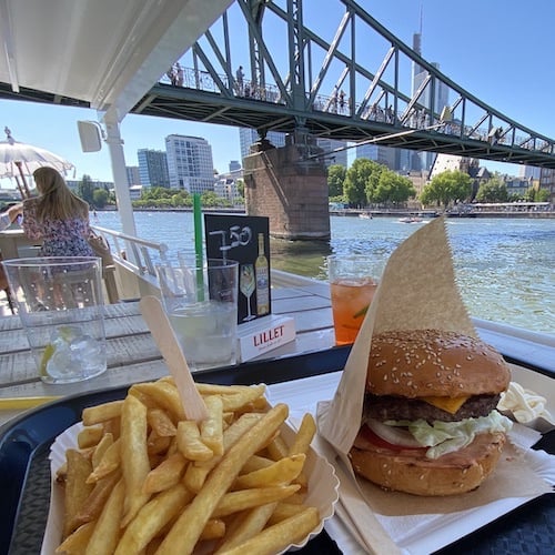 - Gäste die in Wiesbaden Partyboot auf dem Rhein fahren wollen, sollten nachrechnen ob es nicht preiswerter ist ein Zwischenstopp mit Aktivitäten in Frankfurt wie Essen gehen am Wasser, Skyline Fotoshooting und Bootsfahrt auf dem Partyboot auf dem Main eine JGA Idee ist.